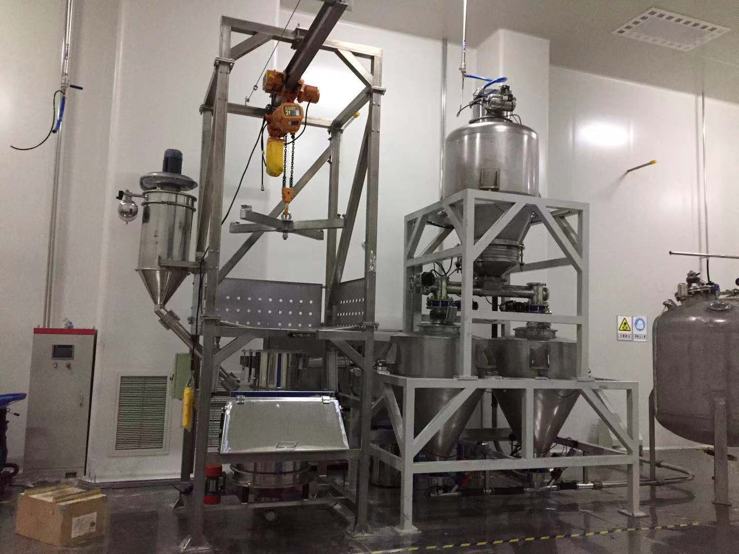 2、通過電動葫蘆將噸袋吊起到合適位置。